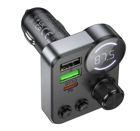 Upgrade your in-car audio and charging experience with the Hoco 48W FM Car Kit (E86) — a compact yet powerful solution featuring PD + QC fast charging, Bluetooth 5.4, LED display, and MicroSD card input. Designed for seamless connectivity, this kit supports FM transmission, hands-free calls, and music playback via USB or TF card (up to 32GB). With dual output ports — USB-C (30W) and USB-A (18W) — it delivers a combined 48W MAX power output, ensuring quick and efficient charging for all your devices.